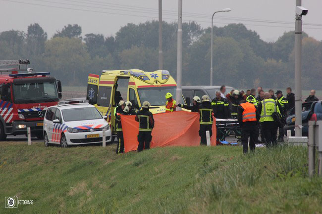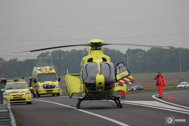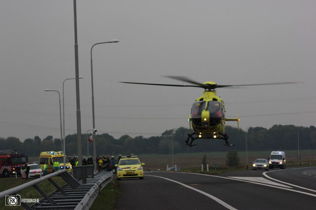Vanmiddag zijn de hulpdiensten massaal ingezet voor een ernstig ongeval op de A58 ter hoo gte van Nieuw en Sint Joosland . Omstreeks 15.20 gebeurde het eenzijdige ongeval door nog onbekende oorzaak sloeg de auto over de kop en kort hierna ontstond er brand , de brand is geblust met een poederblusser . Bij het ongeval kwamen meerdere brandweer voertuigen ter plaatse en ambulance's ook de traumahelicopter (LFL2) uit Rotterdam kwam ter plaatse om assistentie te verlenen. Het slachtoffer is uiteindelijk met de ambulance met spoed afgevoerd naar het ziekenhuis . Tijdens het ongeval was de oprit van de N57 en de A58 in de richting van Goes enige tijd afgelsoten .