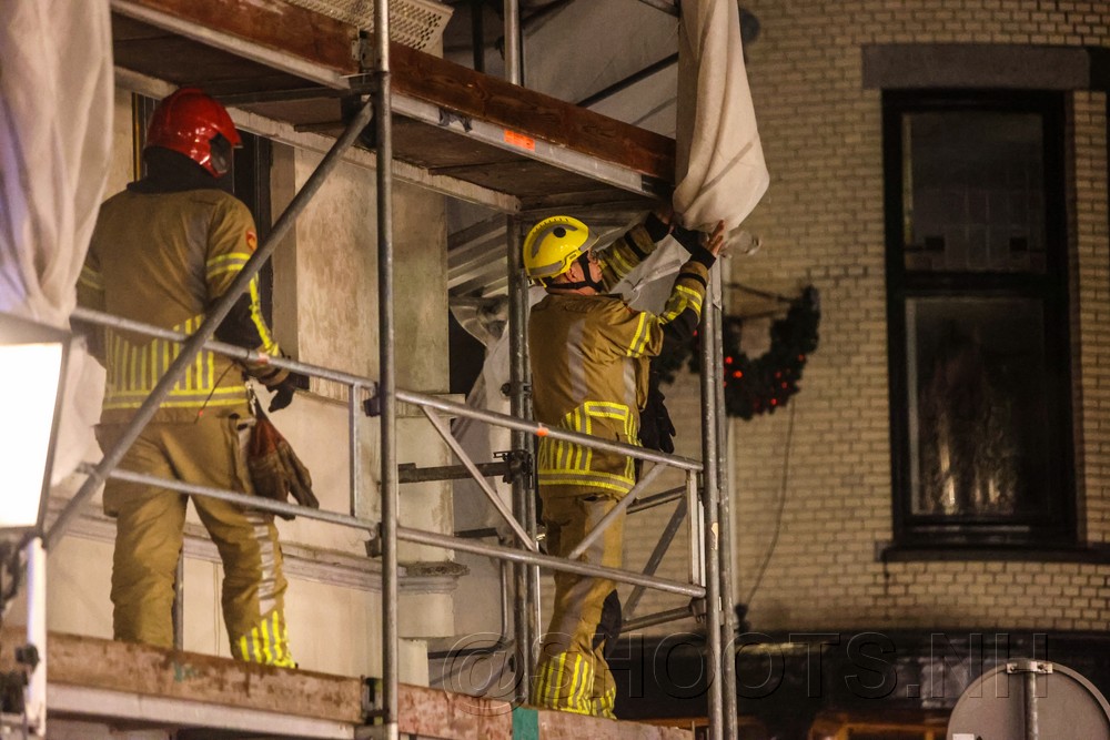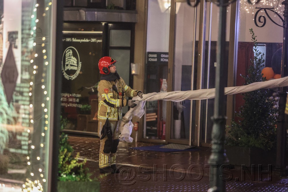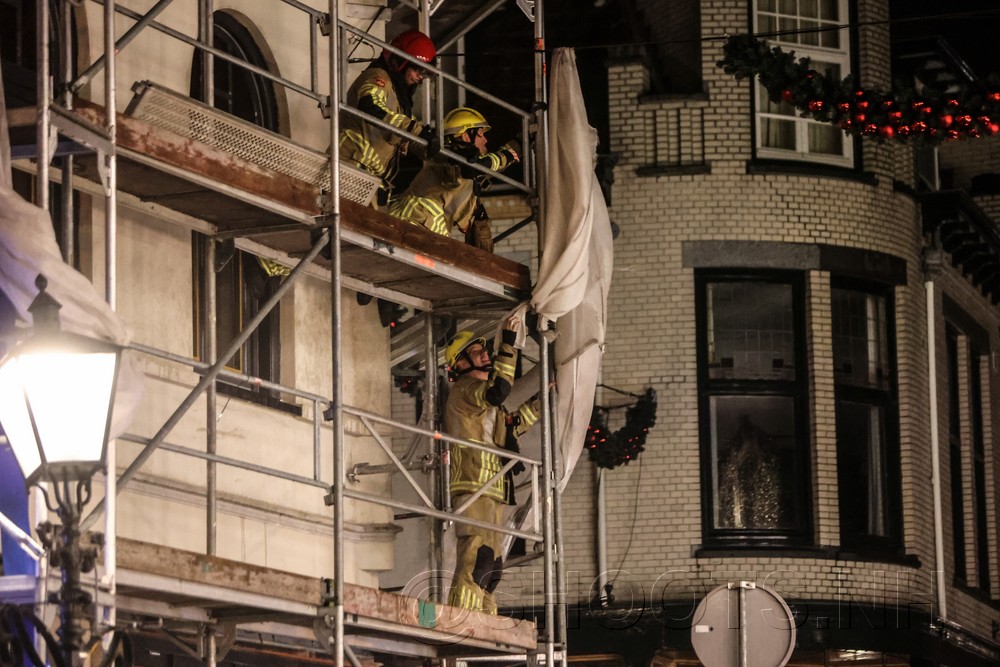 Door een flinke storm die over Bussum waait moest de brandweer uitrukken naar de Havenstraat. Het steigerdoek op het steiger was deels losgeslagen door de wind. De brandweer heeft het doek dat nog vast zat vakkundig losgesneden.
